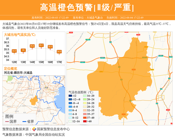 大城县气象台更新高温橙色预警[Ⅱ级/严重]
