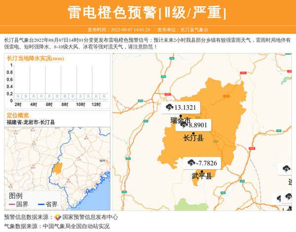 长汀县气象台发布雷电橙色预警[Ⅱ级/严重] 相关文章
