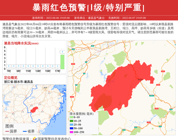 遂昌县气象台发布暴雨红色预警[Ⅰ级/特别严重] 相关文章