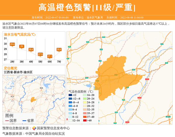 渝水区气象台更新高温橙色预警[II级/严重] 相关文章