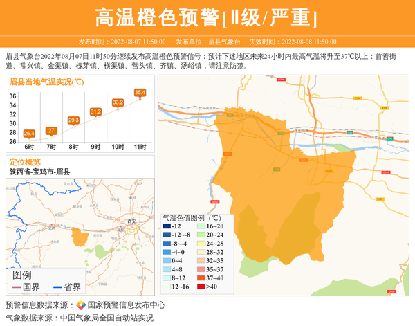 眉县气象台继续发布高温橙色预警[Ⅱ级/严重]