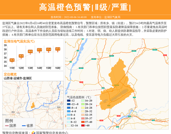 盐湖区气象局发布高温橙色预警[Ⅱ级/严重] 相关文章