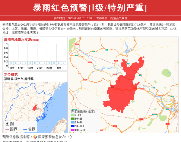 闽清县气象台发布暴雨红色预警[Ⅰ级/特别严重] 相关文章