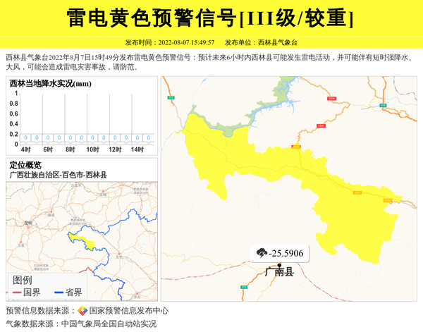 西林县气象台发布雷电黄色预警信号[III级/较重] 相关文章