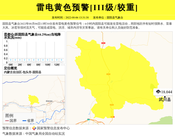 固阳县气象台发布雷电黄色预警[III级/较重] 相关文章