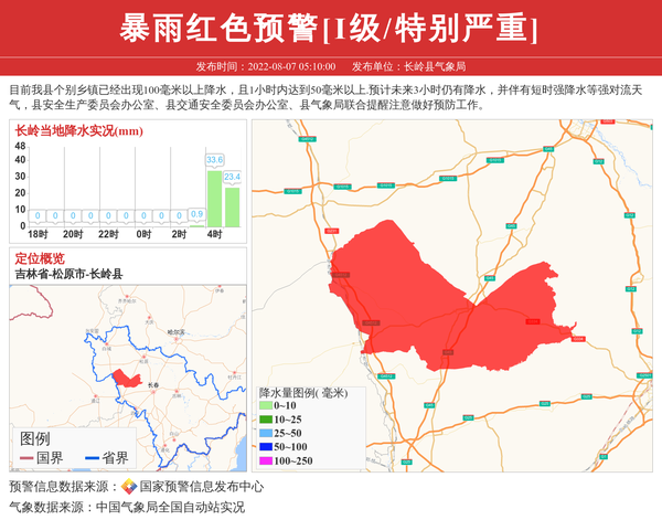 长岭县气象局发布暴雨红色预警[I级/特别严重] 相关文章