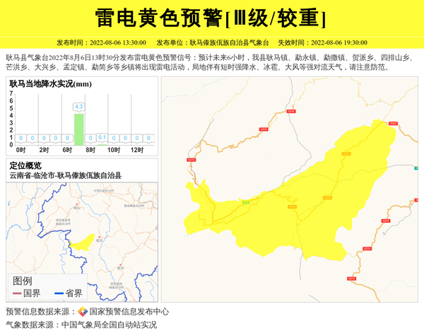 耿马傣族佤族自治县气象台发布雷电黄色预警[Ⅲ级/较重] 相关文章