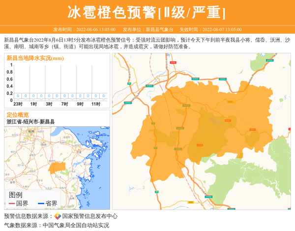 新昌县气象台发布冰雹橙色预警[Ⅱ级/严重] 相关文章