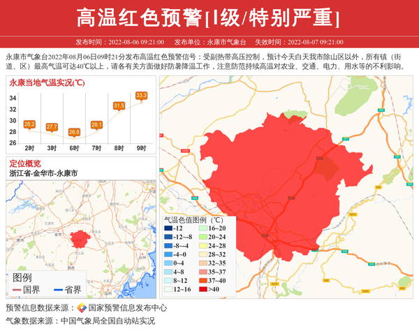 永康市气象台发布高温红色预警[Ⅰ级/特别严重] 相关文章