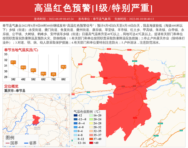 奉节县气象局发布高温红色预警[Ⅰ级/特别严重] 相关文章
