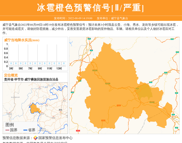威宁县气象台发布冰雹橙色预警信号[Ⅱ/严重]