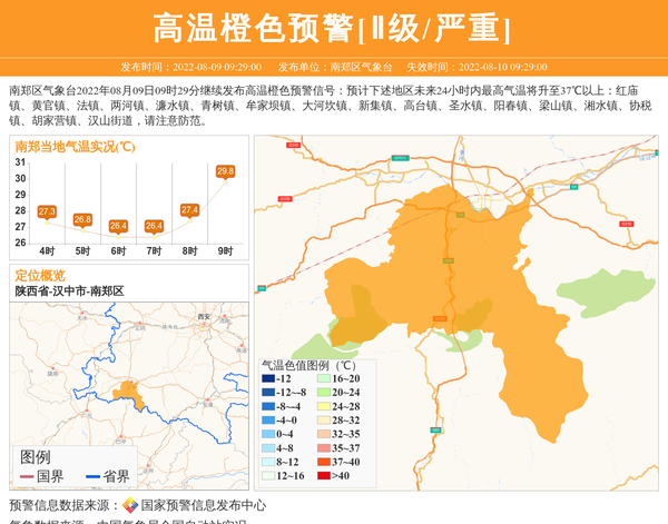 南郑区气象台继续发布高温橙色预警[Ⅱ级/严重]