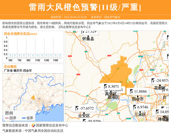 四会市气象台发布雷雨大风橙色预警[II级/严重]