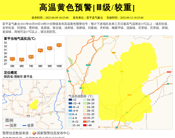 富平县气象台继续发布高温黄色预警[Ⅲ级/较重] 相关文章