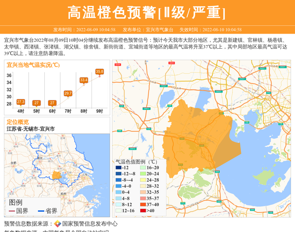 宜兴市气象台发布高温橙色预警[Ⅱ级/严重] 相关文章