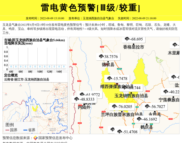 玉龙纳西族自治县气象台发布雷电黄色预警[Ⅲ级/较重] 相关文章