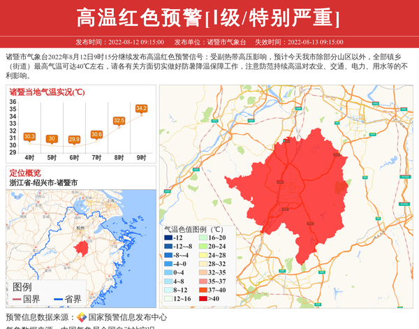 诸暨市气象台发布高温红色预警[Ⅰ级/特别严重] 相关文章