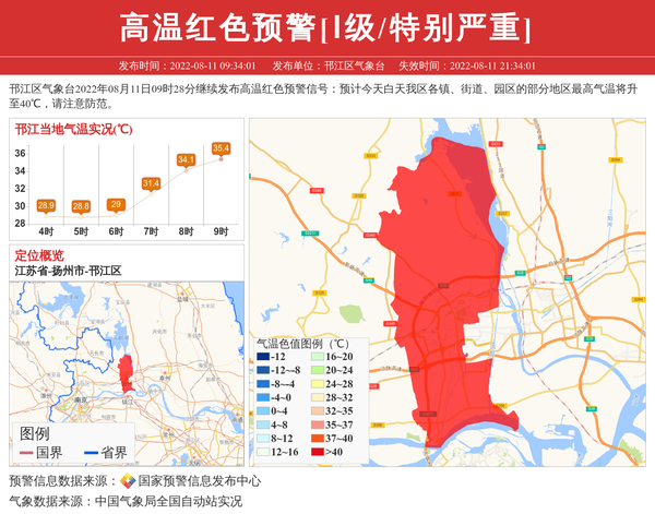 邗江区气象台发布高温红色预警[Ⅰ级/特别严重] 相关文章