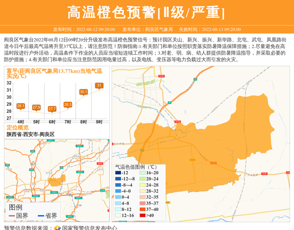 阎良区气象台继续发布高温橙色预警[Ⅱ级/严重]