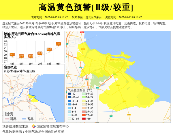 连云区气象台发布高温黄色预警[Ⅲ级/较重] 相关文章