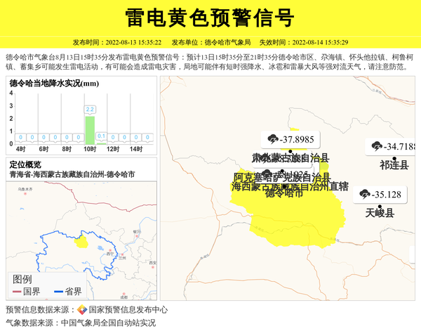 德令哈市气象台发布雷电黄色预警信号 相关文章