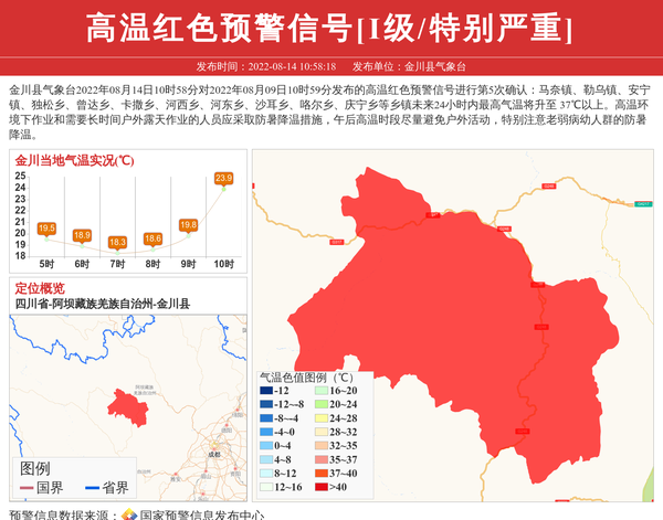 金川县气象台更新高温红色预警信号[I级/特别严重] 相关文章