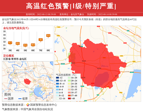 金坛区气象台发布高温红色预警[Ⅰ级/特别严重] 相关文章
