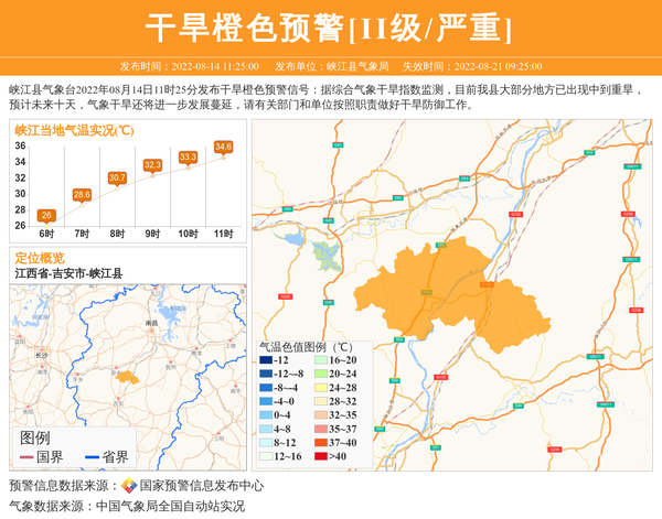 峡江县气象台发布干旱橙色预警[II级/严重] 相关文章