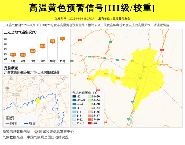 三江县气象台发布高温黄色预警信号[III级/较重] 相关文章