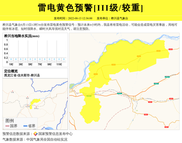桦川县气象台发布雷电黄色预警[III级/较重] 相关文章