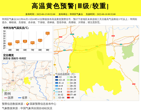 华州区气象台继续发布高温黄色预警[Ⅲ级/较重] 相关文章