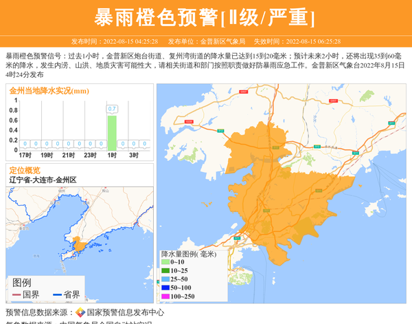 金普新区气象局发布暴雨橙色预警[Ⅱ级/严重] 相关文章