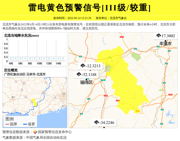 北流市气象台发布雷电黄色预警信号[III级/较重] 相关文章