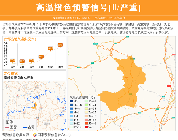仁怀市气象台继续发布高温橙色预警信号[Ⅱ/严重] 相关文章
