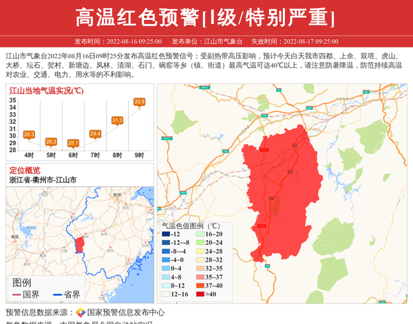 江山市气象台发布高温红色预警[Ⅰ级/特别严重] 相关文章