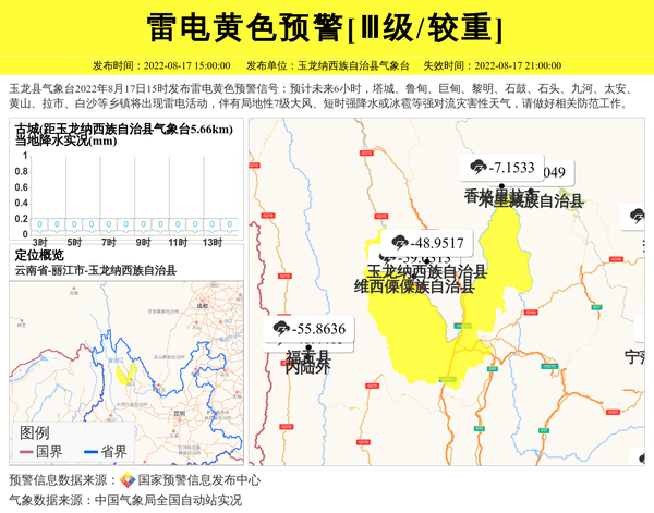 玉龙纳西族自治县气象台发布雷电黄色预警[Ⅲ级/较重] 相关文章