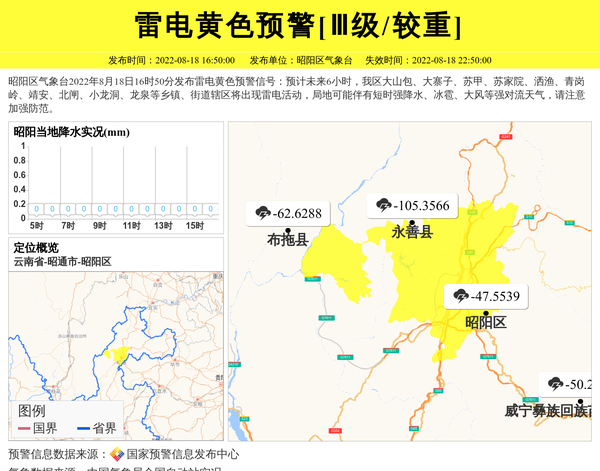 昭阳区气象台发布雷电黄色预警[Ⅲ级/较重] 相关文章