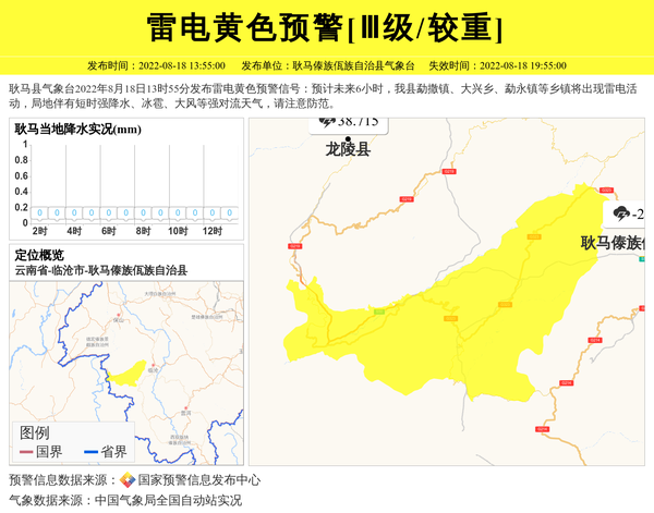 耿马傣族佤族自治县气象台发布雷电黄色预警[Ⅲ级/较重] 相关文章