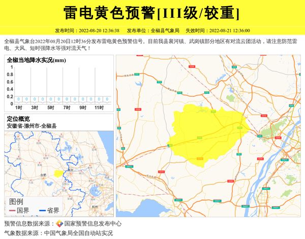全椒县气象局发布雷电黄色预警[III级/较重] 相关文章