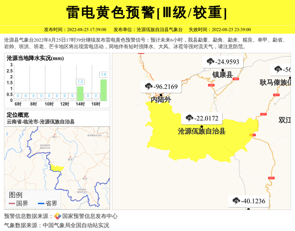 沧源佤族自治县气象台发布雷电黄色预警[Ⅲ级/较重]