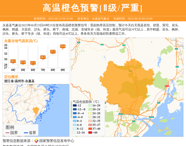 永嘉县气象台发布高温橙色预警[Ⅱ级/严重] 相关文章