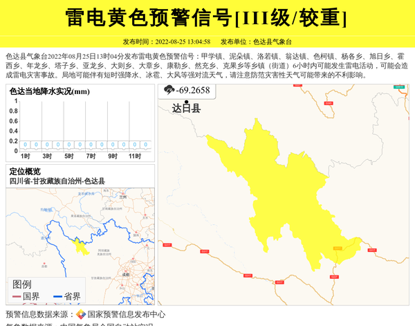 色达县气象台发布雷电黄色预警信号[III级/较重] 相关文章