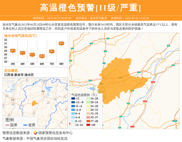 渝水区气象台更新高温橙色预警[II级/严重] 相关文章