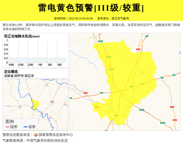 双辽市气象局发布雷电黄色预警[III级/较重] 相关文章