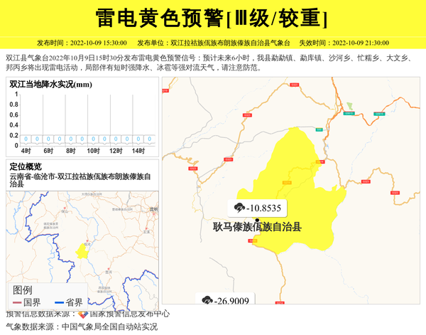 双江拉祜族佤族布朗族傣族自治县气象台发布雷电黄色预警[Ⅲ级/较重] 相关文章