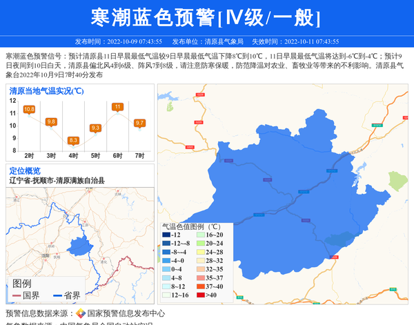 清原县气象局发布寒潮蓝色预警[Ⅳ级/一般] 相关文章