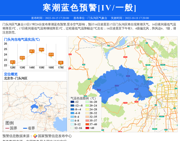 门头沟区气象台发布寒潮蓝色预警[IV/一般]