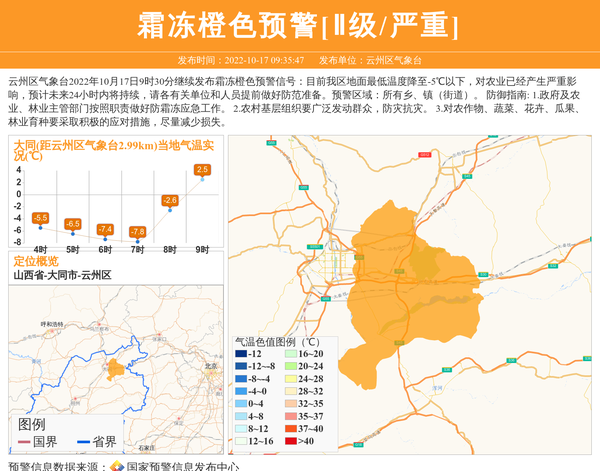 云州区气象台发布霜冻橙色预警[Ⅱ级/严重] 相关文章