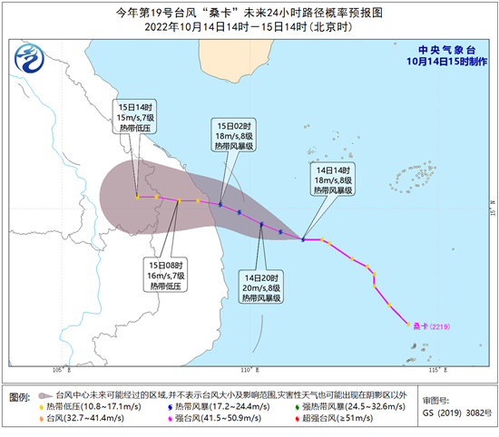 据中央气象台消息,今天(10月14日)下午14时,今年第19号台风“桑卡”(热带风暴级)在南海中部海面上生成,距离海南省三沙市(西沙永兴岛)南偏西方向约310公里。预计,“桑卡”将以每小时20-25公里的速度向西偏北方向移动,强度变化不大。