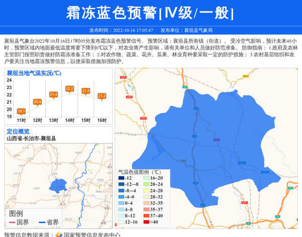 襄垣县气象局发布霜冻蓝色预警[Ⅳ级/一般]